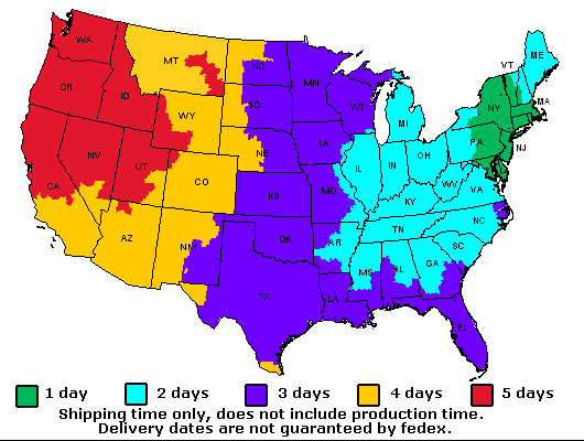 Files received after 1:00 PM EST and before 5:00 PM EST for same day shipping will be charged a 50% premium on print only.Must call to confirm availability.